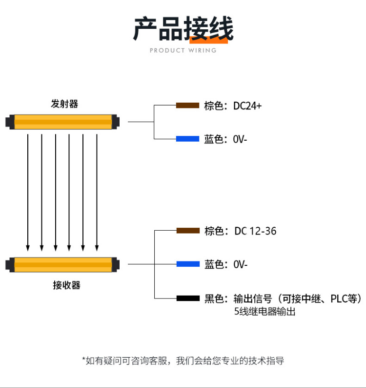 | 光束數量(n) | 保護高度(mm) | 光柵總高(mm) | 規格型號 |